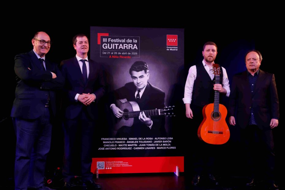 Teatros del Canal acoge un año más la programación del Festival de la Guitarra de Madrid del 21 al 26 de abril con cuatro galas únicas a cargo de los guitarristas Francisco Vinuesa, Manolo Franco, Chicuelo y José Antonio Rodríguez. La programación desvelada por el director del Festival Antonio Benamargo incluye un ciclo paralelo dedicado al ‘Ricardismo’, con conferencias y actividades sobre su figura y las actuaciones de José Acedo & Joselito Acedo, Alejandro Hurtado y Rafael Rodríguez.